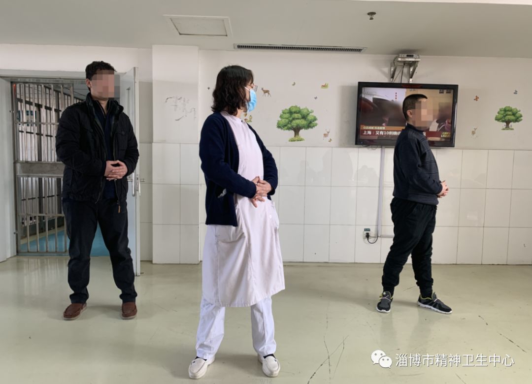 在淄博市精神卫生中心老年心身科,部分家属与患者约定好接他们回家过年,但是这个约定却落空了,让一种叫“新型冠状病毒”感染的疫情挡住了他们回家的路。通过媒体宣传、护士们的讲解,他们对新冠肺炎疫情有了一定的认识。李阿姨因担心家人安全,想出院回家,焦虑到夜不能寐。针对这种情况,我们的护士与她耐心沟通、疏导情绪:“李大姨,现在疫情这么严重,你在咱们医院里,家人孩子们也能安心呀,一会儿你给家人打个电话,她们不能出门也都牵挂着您呢……”之后李大姨眉头舒展开来,“护士你说的对,在这里孩子们才放心,咱不能给家人添麻烦,咱不能给国家添麻烦呐!”