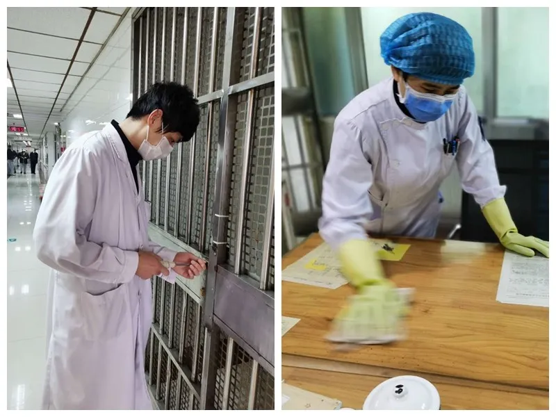 我们病区因为病人数较多,还兼顾着强制医疗任务,人手一下从38人缩减到了14人,工作任务重,压力大,怎样才能高效的工作?我和王春霞、张玉青以及我们的老大姐张静一起商量制定出了封闭管理期间的工作流程、排班模式。我们病区的崔哲和司书博大夫,不只会看病、会下医嘱,在清理厕所、发饭、打扫卫生、巡视病房方面也是一把好手,他们心思缜密,对我们女护士“怜香惜玉”,为我们这些女将们分担了很多很多……
