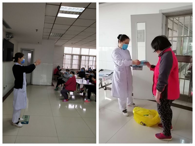 上午9:00,韩护士长每日发放口罩的时间到了,我们先给患者提供免洗手消毒液让大家做好手卫生,然后排队更换口罩,讲解佩戴口罩的意义及正确佩戴方法。患者朱阿姨说:“我们坚决配合你们的工作,特殊时期你们舍弃自己的家庭、孩子来照顾我们,我们一定按要求来做。”