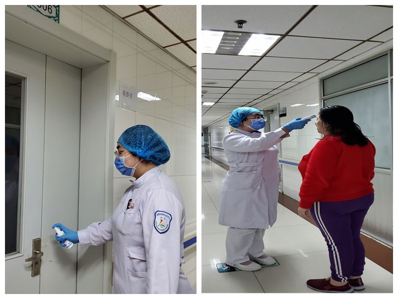 巡回护士一天四次喷洒消毒液进行病室地面消毒;一天六次酒精擦拭所有门把手、开关;每日两次为患者及家属量体温;治疗班护士做完治疗后一天三次收集、倾倒所有生活垃圾,工作紧张有序,忙而不乱。
