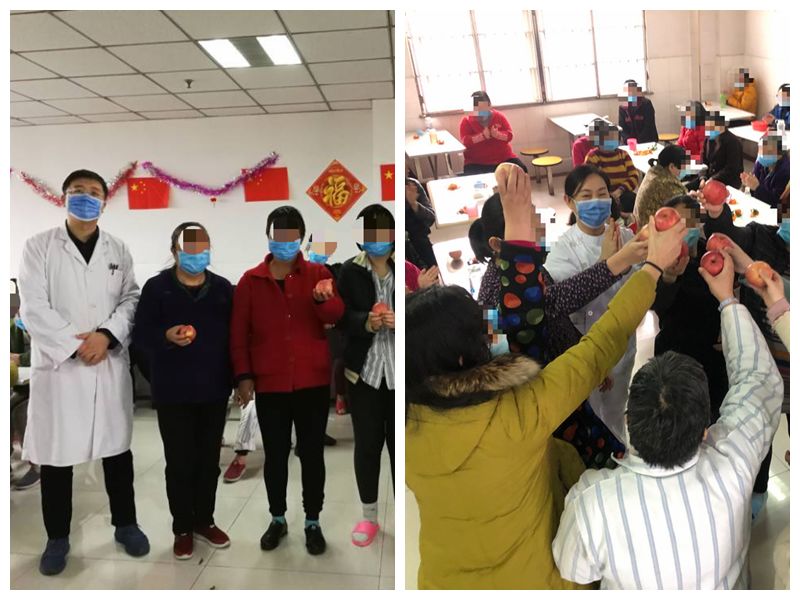这时护士长也来到了患者中间,询问大家有什么需求,并发放医院的爱心捐赠物品。小李说:“护士长,谢谢你们在特殊时期对我们的特殊照顾,也替我们感谢医院对我们的关爱!”此刻,小李的眼睛里噙满了激动的泪水。患者小张不好意思的说:“护士长,我来例假了,可卫生巾用完了……”护士长立即让徐护士为其送来了卫生巾、卫生纸和内裤。这样的小事每天都在我们病房上演。这个时候,我们深深的体会到,不管是医务人员还是患者,还是身处隔离病房外的院领导、同事,我们都是一家人!隔离不隔情,隔疫不隔爱!
