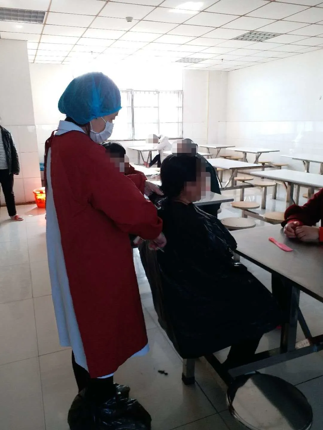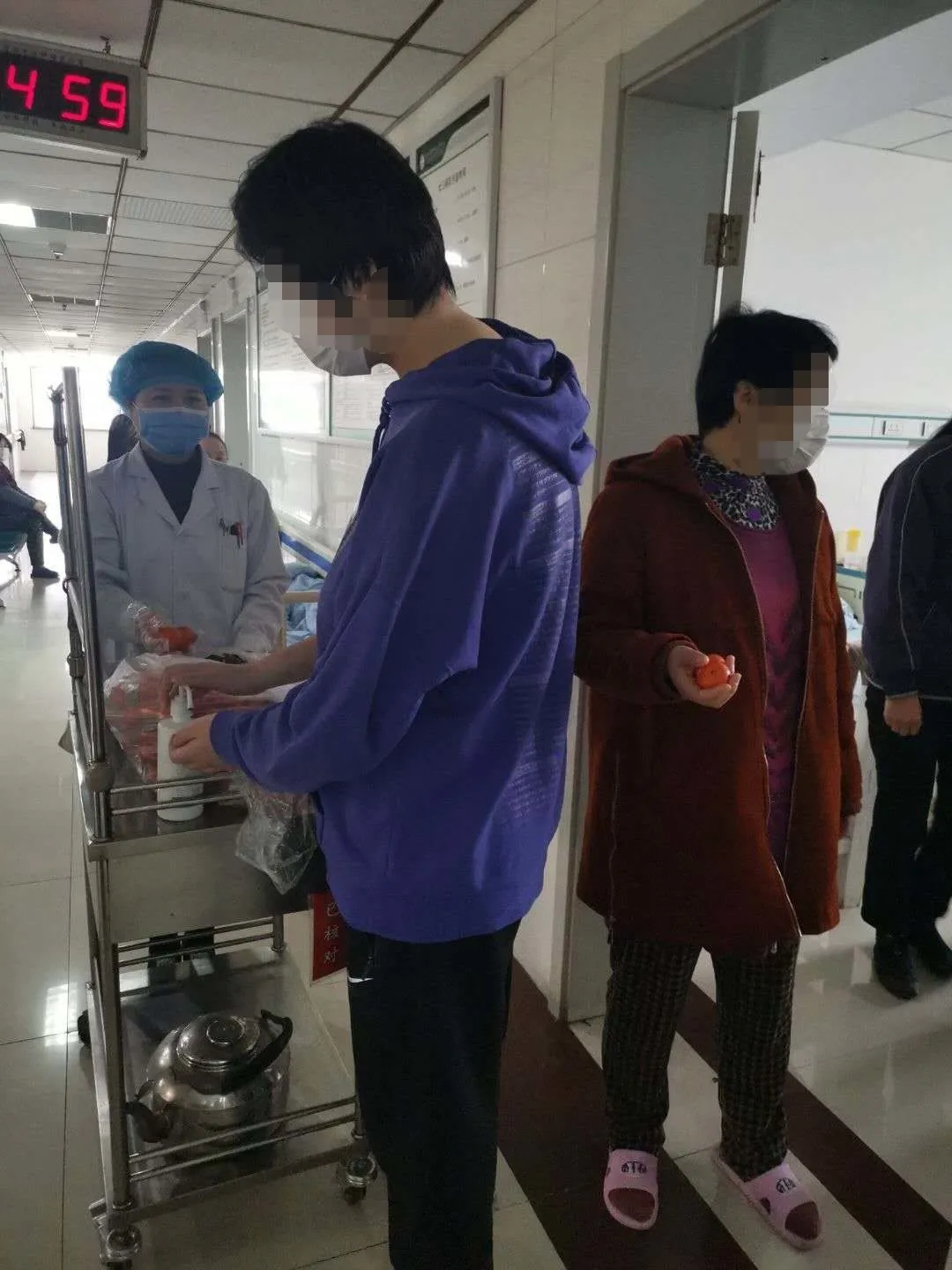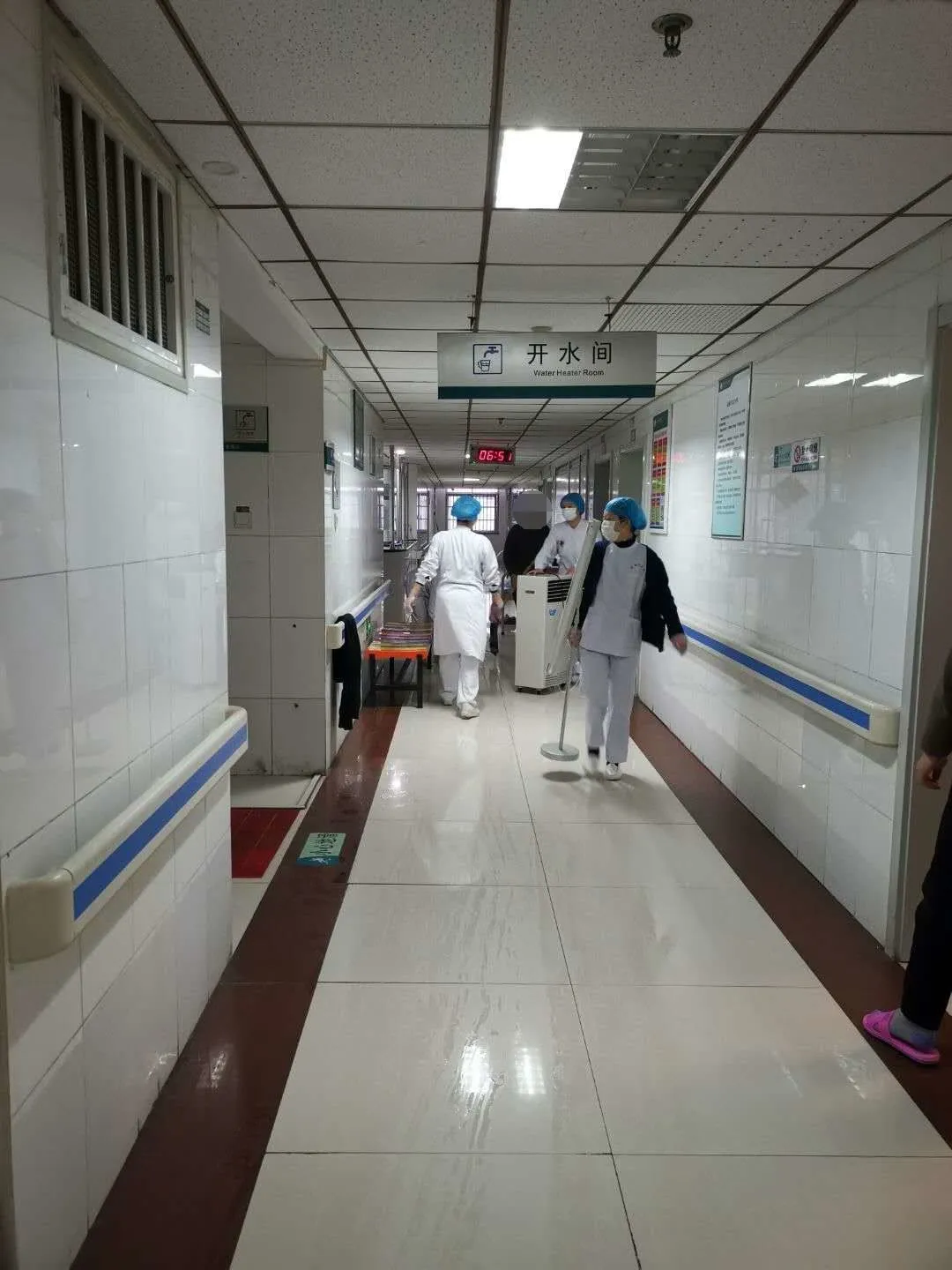 早上五点半,所有的工作人员都起床了,迅速换好衣服,整装待发!为了保证患者的进食安全,避免发生噎食和聚集性就餐,我们采取“一人一房间一病人”的工作模式!李尧副护士长提着大桶喷洒着“84”消毒液,不放过每一个犄角旮旯,边喷洒边嘱咐着每一个患者,“小心地上有水,去厕所扶好扶手”;肖岩护士拿着拖把穿梭在走廊;田华护士拿着刷子在刷马桶,边刷边说,太干净了,看起来真舒服,这里污住了,看有硫酸吗,彻底刷个干净……大家越干越上瘾啦,看到刷的干干净净的马桶,像中了彩票一般的高兴!护士王惠、陈晓麒、王文君、张成红,有条不紊地为病人发着可口的饭菜,“2床阿姨牙不好,给她留个软火烧,5床阿姨不吃肉,6床阿姨不吃素,7床不吃芹菜,16床姐不吃……”护士们对患者的饮食习惯都了如指掌,比对自己爸妈的喜好还清楚呢!“护士,厕所马桶又堵啦”,李尧副护士长去找来杆子,没几分钟的功夫就把马桶疏通了!于护士拿着酒精喷壶,喷洒着每处高频接触物品,热水开关,水龙头门把手,走廊扶手床头桌面,只要能接触的地方,容易滋生细菌病毒的地方都仔仔细细的把好关,消好毒!一个小时后,患者吃完了饭,走廊的卫生也打扫好啦,看着宽敞明亮的走廊,舒坦……准备吃个早饭,开始一天的工作了,还没吃几口,护士长说,“15床陪人、36床陪人定了一份饭,那可吃不饱,我们少吃口,都分给他们些吧。几床她妈妈一人带她,不容易,呆会儿给他个火烧吃……”话刚落,大家纷纷拿起自己省下的火烧 油饼给他们送过去!“给5床个火烧,给8床个油饼……”正分着呢,病区主任王陶丽又端着热乎乎的稀饭给1床送来了,说“你妈妈这几天吃饭不好,熬的稠呼呼的稀饭,让她多喝些……”陪人热泪盈眶,感激之情溢于言表,“王主任,这些天,你们所做的这一切,我们这些家属患者全都看在眼里,谢谢你们,你们太辛苦啦,你们舍下家里的老人,孩子,为了保证我们的安全,把你们一块封闭在这里,我们心里都不是滋味,感觉好惭愧,咱们医院的医生护士,都是好样的,你们是世界上最可爱,最值得敬佩的人!”“厕所再也不是以前脏兮兮的厕所了,地面都快当镜子照了,门把手再也不油渍渍,整个病房现在是一尘不染……”病号半开玩笑说,我们搬新居啦!王主任说,“看到你们心情好了,我们越干越有劲啦……”接着又仔细询问着每个患者的身体状况,细心的安慰着每一位患者。门铃响了,病区门外放了六十斤苹果,五十斤沙糖桔,各种生活用品(饭盒勺子毛巾澡巾牙膏牙刷……)三箱奶。原来是我们医院领导担心封闭式管理期间患者吃不上水果、生活用品不够用,专门为他们定制的。患者领到东西说,“咱医院的领导太有心了!给我们医院的领导们点赞,身为五院的一份子,太荣幸了!你们将成为我的私人订制医生……”