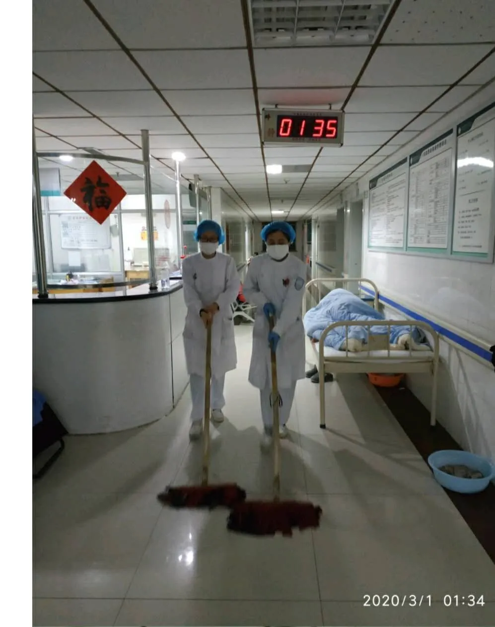 第一天晚上,面对着三个班,八个人,24小时制的我们,白班加小夜、白班加大夜的排班,再加上病人一日三餐的饮食!每人每天平均要工作十八九个小时!工作中我们要负责病人一日三餐的口服药,打扫病房里的卫生,每日六次清洁消毒,包括病房里空气消毒,紫外线消毒等。面对工作任务重而人手不够的问题,李尧副护士长当晚给我们开了个会,共同讨论如何科学合理地排班、分工,大家纷纷表示:工作一起干,还要干好,干漂亮!十四天,咬咬牙就过来了,一起加油!