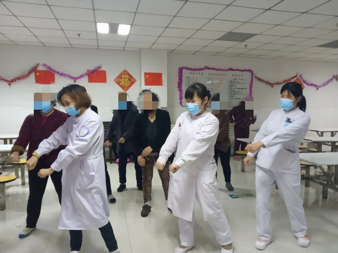 铮铮护士带领大家做游戏,蔡护士和徐护士教患者画画,孙护士和倪护士则翩翩起舞,舞出了最美的风景。每天晚饭后,韩主任冯护士和高护士就带领患者排队在走廊健走,跟随她们矫健的步伐,患者的运动细胞都被调动起来了......