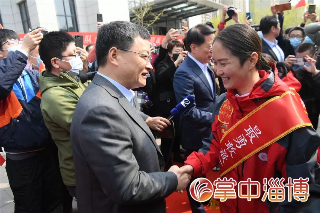 合影留念 市委书记江敦涛讲话 颁发荣誉证书 医生代表宿献周、护士代表孟力维发言 市委书记江敦涛与队员握手欢迎 市长于海田与队员握手欢迎 久别的亲人紧紧相拥 让我们再回顾一下英雄回家的全过程 早上6点,淄博迎接车队启程赴位于德州的医疗队休养隔离地点。 家人同事们早早来到齐盛宾馆欢迎仪式现场,等待亲人回家。 齐盛国际宾馆外,市民走上街头迎接英雄归来。 在滨博高速淄博西收费站,公安干警和医务人员列队欢迎。