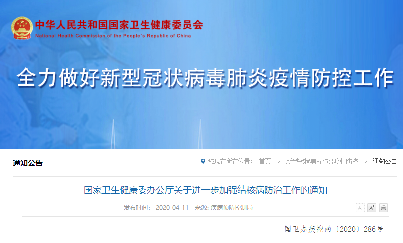 当前我国新冠肺炎疫情防控呈现积极向好态势,各地复工复产逐步有序展开,各级各类医疗卫生机构陆续恢复日常卫生健康服务。结核病是危害人民群众身体健康的重大传染病,各地要在科学精准防控新冠肺炎疫情的基础上,根据《“十三五”全国结核病防治规划》和《遏制结核病行动计划(2019-2022年)》的要求,全面有序做好当前结核病防治工作。现将有关工作要求通知如下: